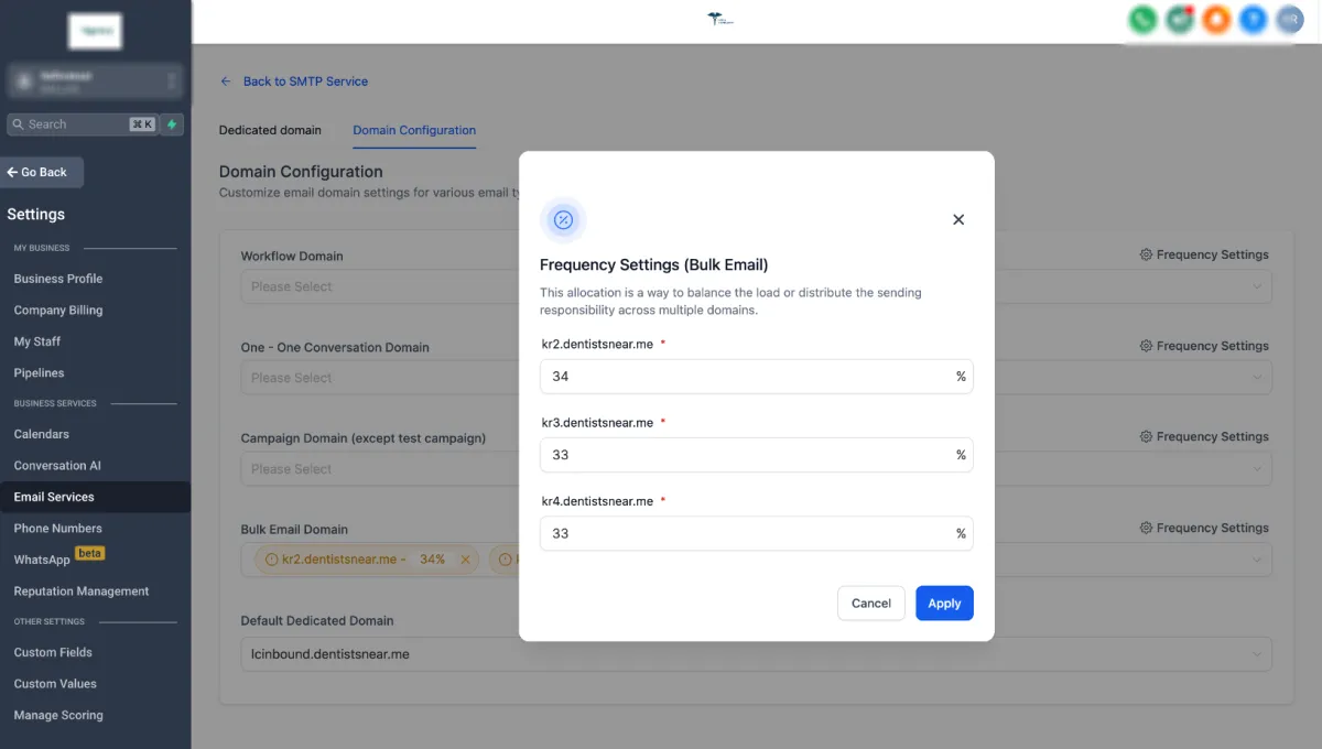 By assigning different frequencies to each domain, you can prioritise domains with better deliverability rates or adjust the sending frequency based on the performance of each domain. This can help ensure that emails are reaching the intended recipients' inboxes consistently.