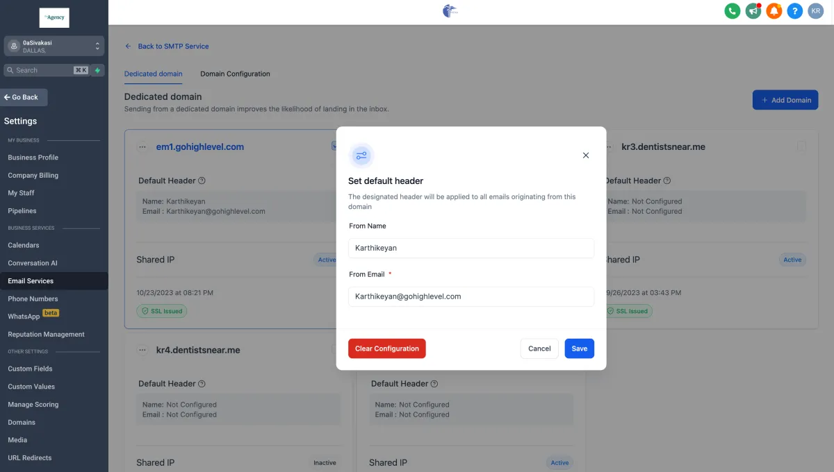 How to set up a default header for a dedicated sending domain?