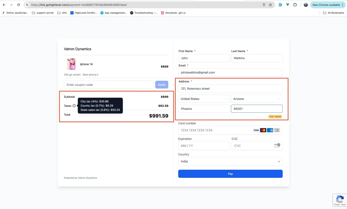 Business user's can now have automatic taxes applied while checkout at Payment Links for end customers in USA