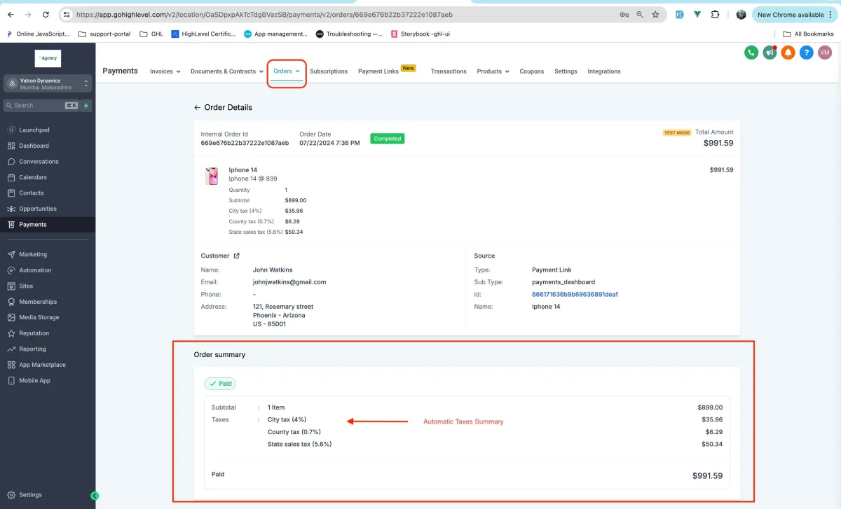 Business users now have the capability to configure and apply automatic taxes on Payment Links