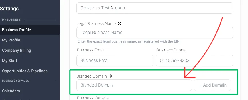 Navigate to the Account > Settings > Business Profile > Branded Domain