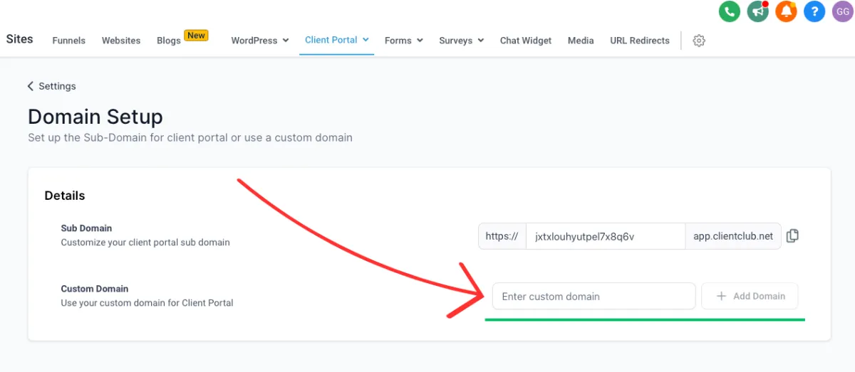 Setting up Branded Domain, Email Sending Domain, Sites Domain, Client Portal Domain & more