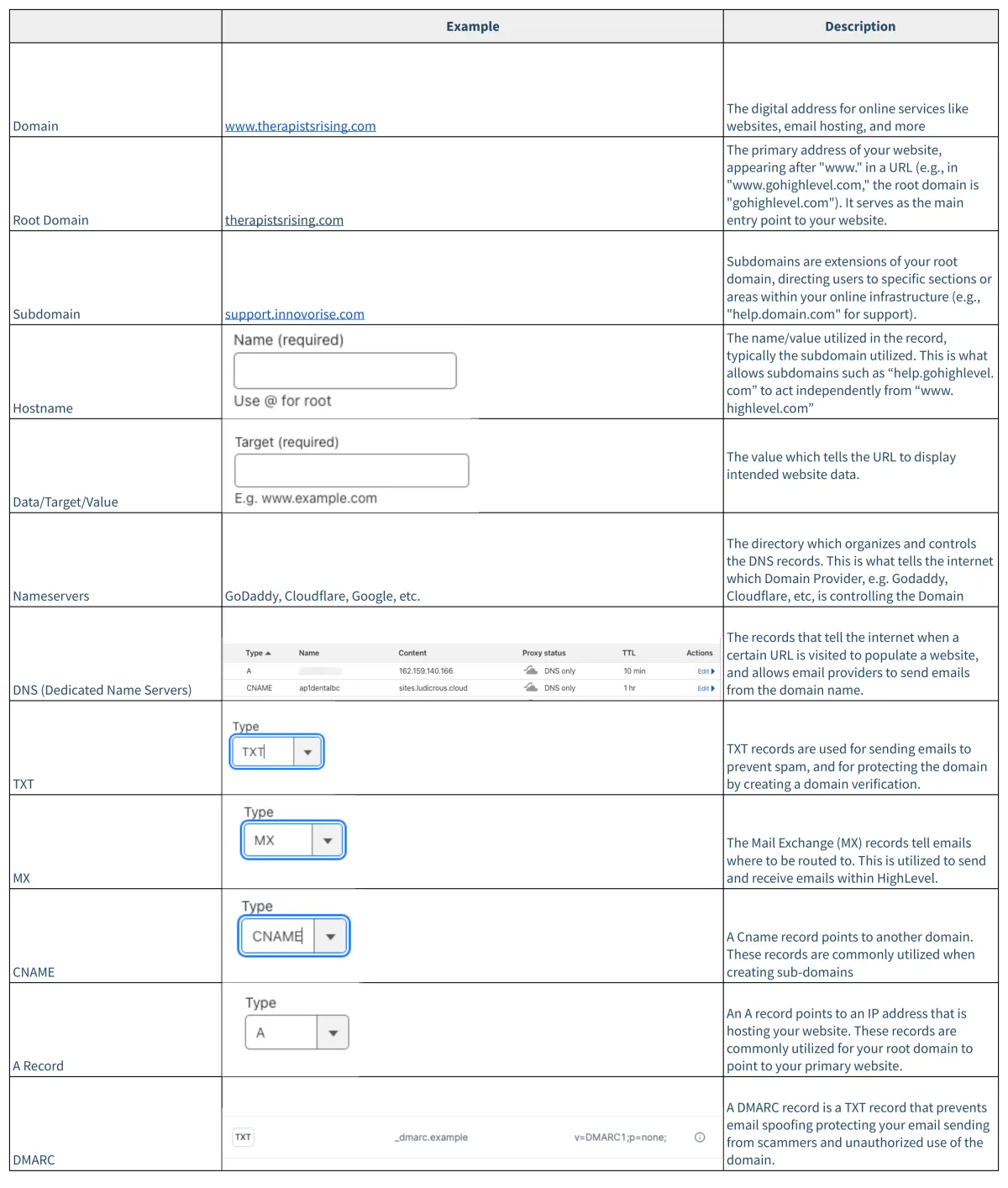 If your domain provider is not Google, Cloudflare, or GoDaddy, manual DNS configuration is required. The system simplifies this process by generating the necessary record values for you to input into your domain provider's system. This ensures seamless integration of your domain with Innovorise, supporting branded domains, websites/funnels, dedicated domains, and the client portal.