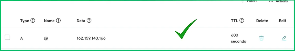 Ensure each A record points to the correct data specified by Innovorise. “162.159.140.166”