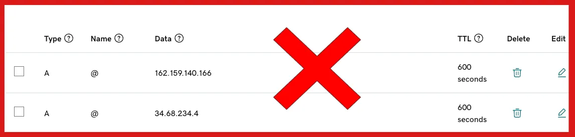 Ensure there are no duplicate A records pointing to the root domain in your domain provider's configuration.