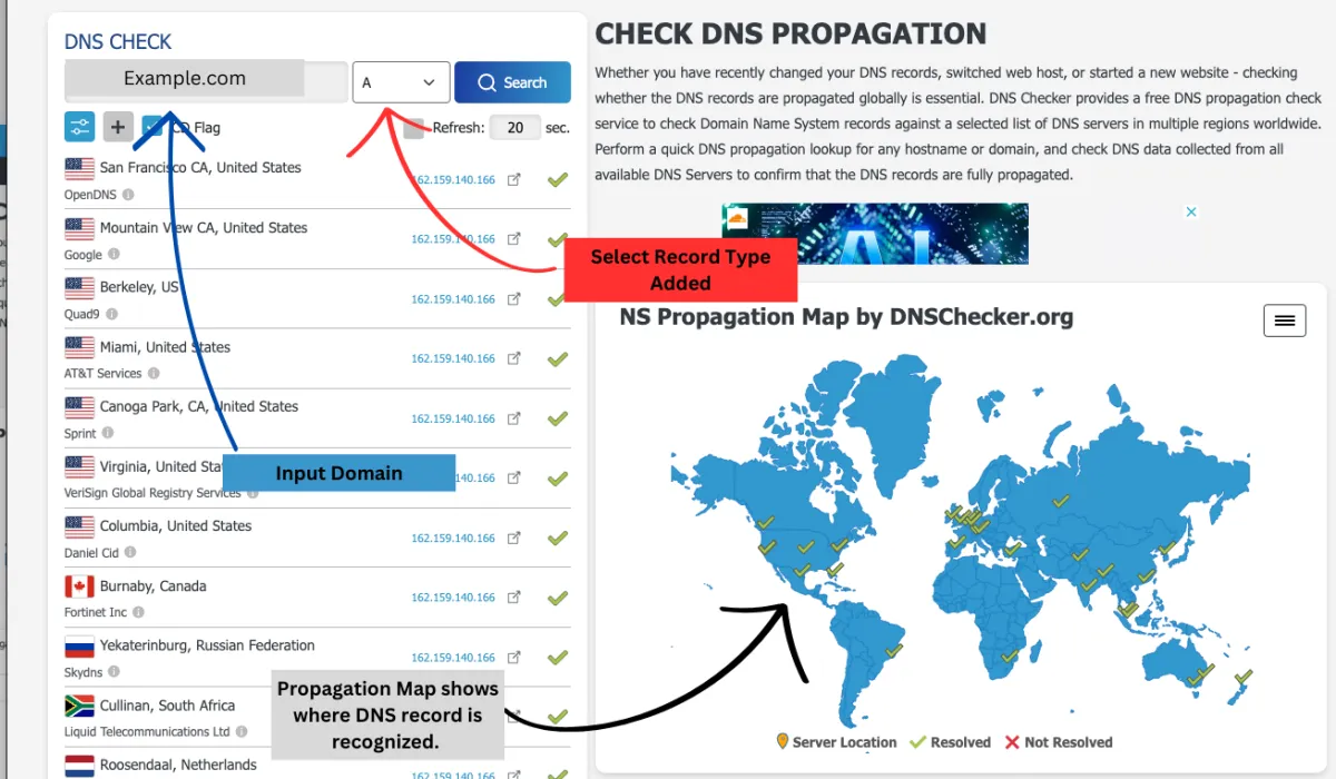 Verify whether the DNS changes have fully propagated across the internet.